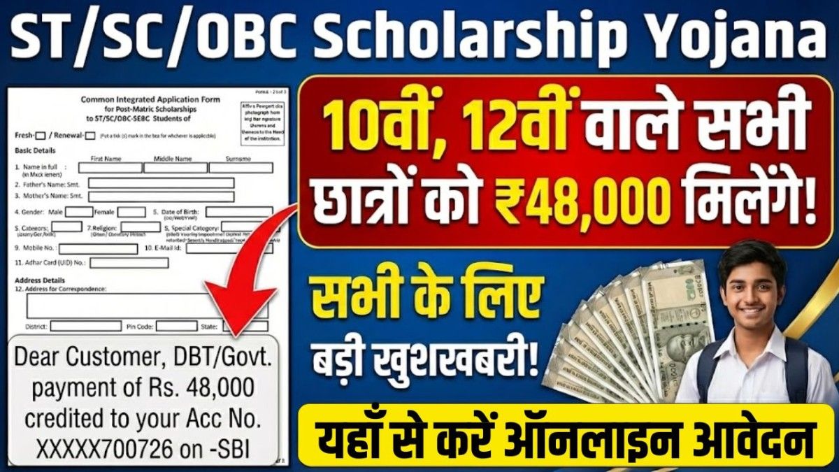 10वीं, 12वीं वाले सभी छात्रों को ₹48,000 मिलेंगे, यहाँ से करें ऑनलाइन आवेदन ST SC OBC Scholarship Yojana